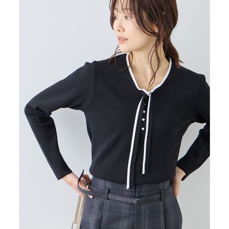 ・配色ラインを効かせ、パールボタンをあしらった華やかなフロントデザイン。