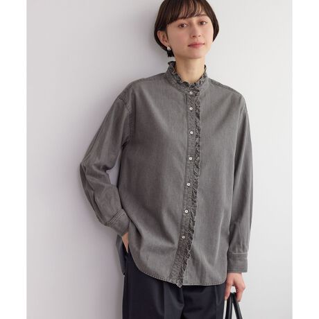 シャンブレーフリルシャツ/イージーケア