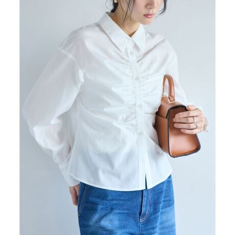 昨今ずっとトレンドのシャツアイテムは羽織ではなくトップス使いが増えてきました。春物を買いたい季節に重ね着もアウターのインナーとしても華やぐようフロントにギャザーデザインをほどこしたことと、オーバー過ぎないコンパクト目のサイズ感にしたことで万能使いできるようにしました。ウエストを細く見えるようなシャープなフォルムにしているのもポイントです!オケージョン使いも新生活にもぴったりです。