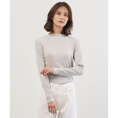 襟端をメロー加工で仕上げた、顔周りを華やかにするハイネックシアーカットソー。高すぎず低すぎない絶妙な襟の高さにこだわりました。シャツやニットなどのインナーとして重ねるだけで、今年らしいトレンド感のあるレイヤードスタイルが完成します。いつもの着こなしに、さりげない華やかさと抜け感をプラスできる1枚です。