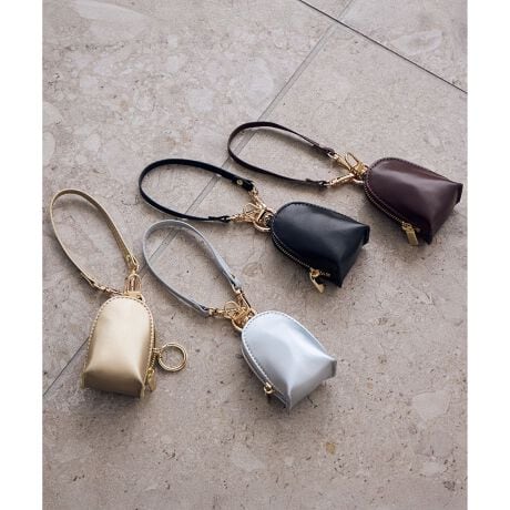 デザイン・上質なエコレザーとゴールド金具が高級感漂う ・ワイヤレスイヤホンやリップ入れ・コインケースとしても◎・ミニ手持ち付きがうれしい
