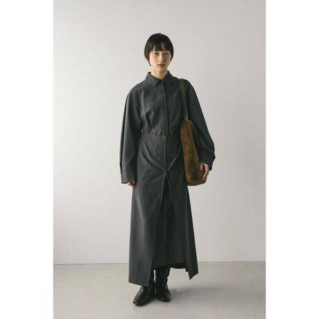 モデル身長172cm(Mサイズ着用)トレンドのスカートレイヤードスタイルが一枚で叶うシャツワンピース。ナローシルエットのボタンあきシャツワンピースにフロントファスナーあきのスカートがドッキングされており、モード感あふれるコーディネートを楽しめます。逆開ファスナー仕様で、好きな位置で開閉可能。上見頃ウエストや袖にはタックが施され、Iラインシルエットの中にもしっかりと立体感がプラスされたスタミキらしいフォルムにこだわったワンピースです。ストレッチややあり、透け感なし。【お手入れ方法】マシンウォッシュ可