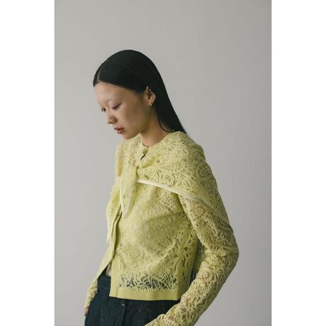 [型番:500JSA32-2401]起毛レースを使用したトレンドのレーススカーフ。サテン素材でトリミングし上品な印象に仕上げました。頭に巻くのはもちろん、腰や首に巻くだけでぐっとこなれた印象に。500JSA70-0251(ニュアンスレースニットカーデ)とセットアップ着用可能。ストレッチなし、透け感あり【お手入れ方法】手洗い可