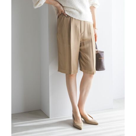 今年トレンドのバミューダパンツはアセテートビスコースを採用し高級感ある光沢がポイント。