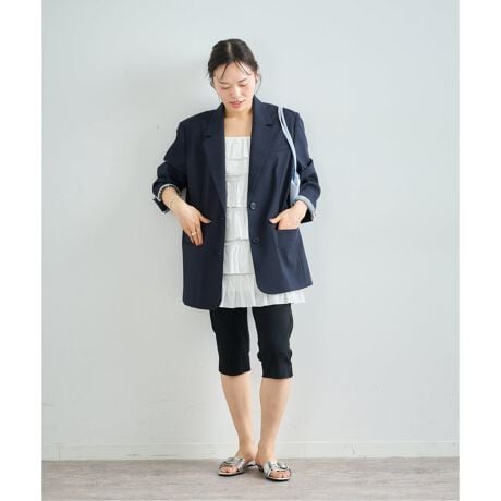 ・春のアウタースタイル: あえてメンズライクなオーバーサイズブルゾンを羽織って、フリルの甘さを引き立てるコントラストを楽しんで。