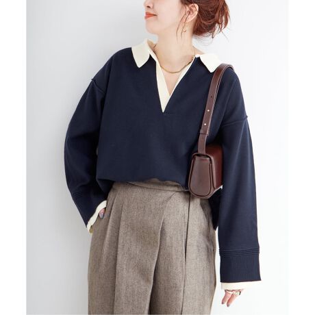 ミラノリブ素材を使用したトレンド感ある襟付きニット。