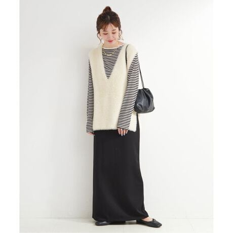 ふわっとフェミニンなベスト×スカートの女性らしさのあるセットアイテム。