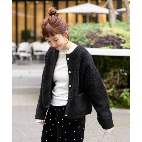 素材感:チクチク感は感じず、ふくらみのあるボアっぽい素材感。