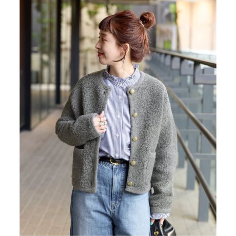 ふんわりとしたパイル編みが魅力のショート丈ニットカーディガン。