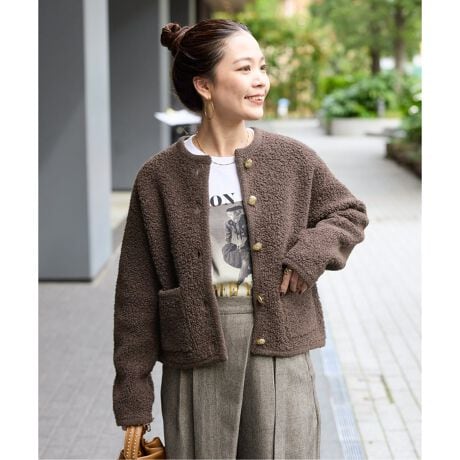 素材感:チクチク感は感じず、ふくらみのあるボアっぽい素材感。