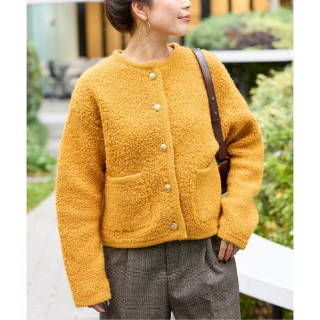 素材感:チクチク感は感じず、ふくらみのあるボアっぽい素材感。