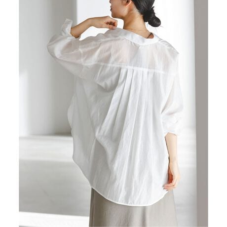 上質な光沢感を持つ、シルキータッチのローン素材で仕立てたシャツ。シルキーな微光沢&コットンのカジュアルさがミックスされた素材を使用しており、シンプルなシャツながら女性らしく表現してくれます。