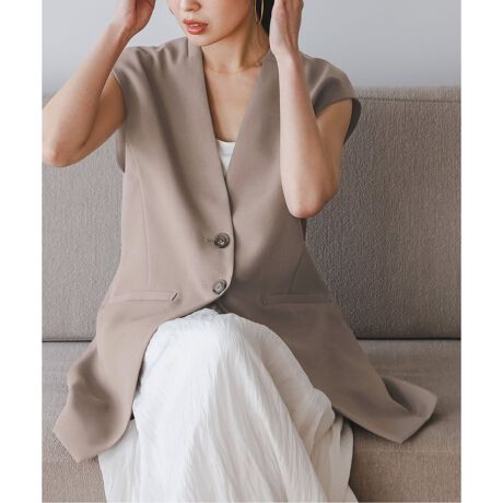 反発性のある素材を使用しているため、さらっと纏うだけで主役級の表情が生まれるロングジレ。