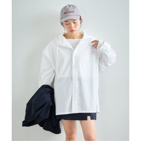 ブルゾンライクなディテールが光る、大人のフーディシャツ。