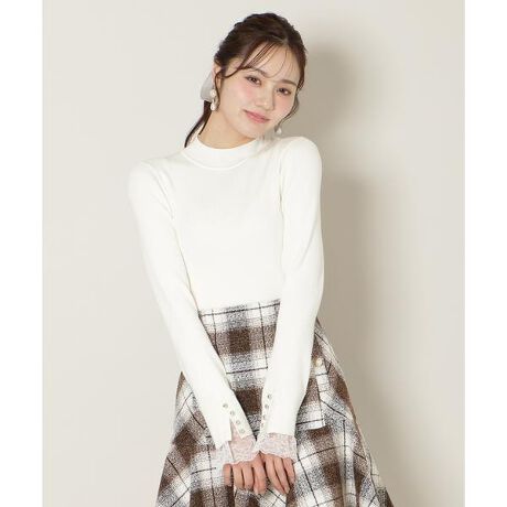 袖口のレースがワンポイント!着回し力抜群のハイネックリブニットトップス【Design】・繊細なレース袖の上品リブニット♪・リブニット素材が身体のラインを美しく見せ、すっきりとしたシルエットに。・スカートにもパンツにも合わせやすく、幅広いコーデに活躍◎・デートやおでかけ、通勤などのきちんと感が欲しいシーンにもぴったりです!【Fabric】・なめらかで柔らかな肌触りのニット素材を使用。・ご自宅でお手入れが出来るのも嬉しいポイント♪・ホワイト、ピンク、サックス、ブラックの4色展開となります。【Care】手洗い可能