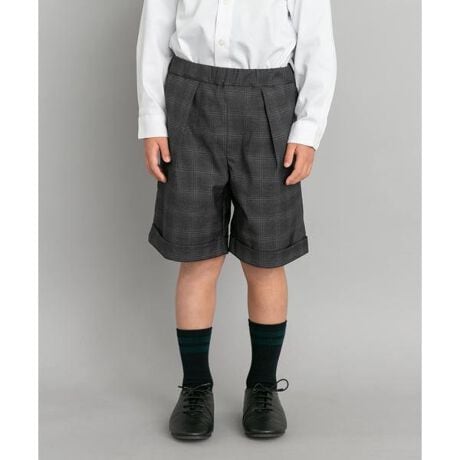 入学式など特別な日にピッタリなショートパンツをご用意しました。ポリエステル×レーヨンの柔らかく上品な生地を使用し、見た目のきちんと感と着心地の良さを両立しました。ウエストは調整できるアジャスターゴム仕様でウェストが細身のお子様にも安心です。前にタックを入れて幅も程よいゆとりのあるシルエットで、ひざにかかるくらいの丈感で裾はロールアップデザインでかっちりした中に少し個性を取り入れてちょっとしたおでかけ着としても着用いただけます。お好みのトップスと合わすのはもちろん、同素材のジャケットとのセットアップスタイルでこなれたフォーマルコーデが完成します。