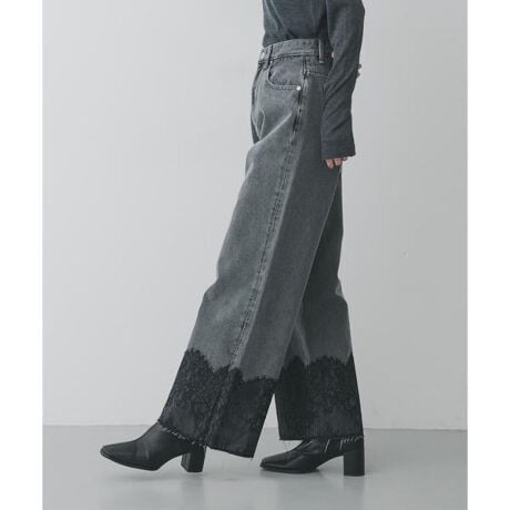 【足元に遊び心を。レースドッキング・ストレートデニム】
