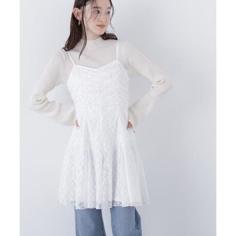 繊細なレース素材を使用したキャミチュニック。軽やかな透け感があり、レイヤードスタイルに映えるデザインです。Tシャツやニットの上に重ねるだけで、コーディネートに女性らしさをプラスしてくれます。<素材>繊細なカットソーレースを使用しています。<詳細>仕様・開閉なし裏地・あり透け感・なし / 光沢・なし / 伸縮性・あり生地の厚さ・薄手※モデルの着用画像の場合、光の当たり具合により、実際の色味と異なって見えることがございます。色味は、商品単体の画像をご参照ください。