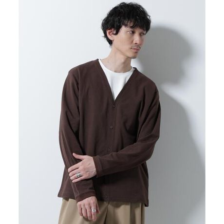 細かなメッシュ状に編み上げたカットソー素材を使用したカーディガン。生地の表に小さな穴が開いているので、通気性もよく蒸し暑い夏でも快適に過ごせるアイテムです。