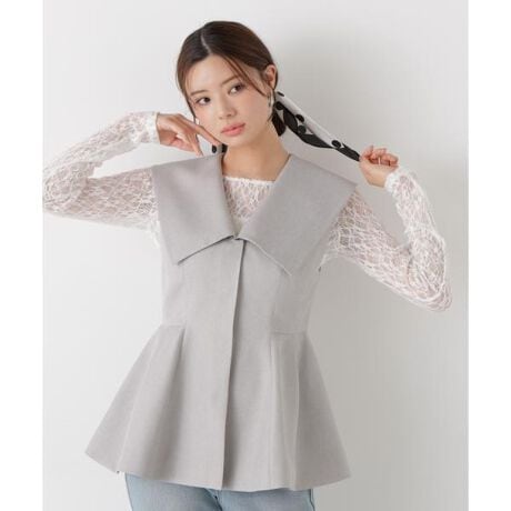 大きな襟とペプラムシルエットでスタイルアップを叶えるジレ。ウエスト位置が高めのペプラムシルエットで、スタイルアップ効果を期待できます。ボトムス次第でキレイめにもカジュアルにも着回せます。