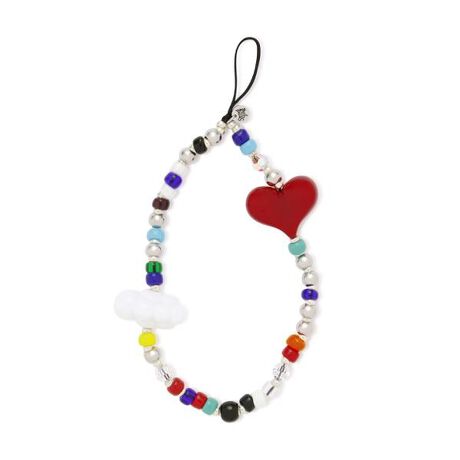 存在感のあるビッグサイズのホワイトクラウドビーズに、ブランドシグネチャーの赤いハートを組み合わせた、絶妙なkawaiiコントラスト。