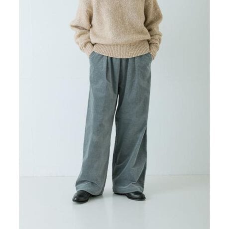 ナチュラルな表情と、上品な風合いが日々のスタイリングにマッチするアイテム。細やかな凹凸感が特徴のライスコール生地を使用しています。少しストレッチが入っていて楽な着心地なのも嬉しいポイント。トップスとのバランスが取りやすく、様々なスタイリングになじむ1本です。下にレギンス等を重ねても表に響かず着用いただけます。ウエストはゴム+紐の仕様になっていて調節が可能。