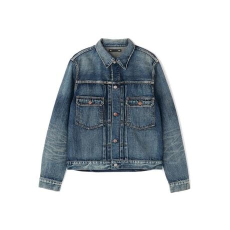 MINEDENIMらしい緻密な設計と加工技術が光る、タイトフィットのデニムジャケット。