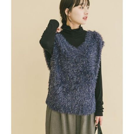 毛足の長いシャギー素材を使用し、見た目にも暖かく柔らかな風合いに仕上げたショートニットベスト。ほんのり光沢のある起毛感が、冬のコーディネートに奥行きと上品な華やかさをプラスします。顔まわりを明るく見せてくれるニュアンスカラーも魅力です。トレンド感のあるショート丈は、自然と重心を高く見せ、スタイルアップ効果も。ショート丈なので合わせるインナーを選ばず、すっきりとした印象に。ボリュームのあるボトムスとも好相性で、バランスよく着こなせる一枚です。