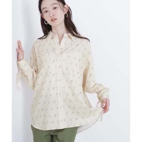 フラワープリントが華やかなシャツ。カフスにあしらったリボンがさり気ないポイントです。同素材のパンツを揃えてセットアップで着ると、コンビネゾンのようなスタイリングが楽しめます。単品でも使いやすいデザインなので着回し力が高いアイテムです。<素材>軽やかで落ち感のある素材にフラワープリントを入れています。表面感があり上品な印象の素材感です。<詳細>仕様・前ボタン裏地・なし透け感・なし / 光沢・なし / 伸縮性・なし生地の厚さ・普通<シリーズ>■パンツ[品番:0176138201] ※モデルの着用画像の場合、光の当たり具合により、実際の色味と異なって見えることがございます。色味は、商品単体の画像をご参照ください。
