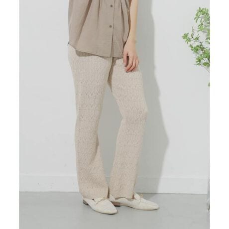 ◯透かし部分が涼しげなフレアシルエットのニットパンツ