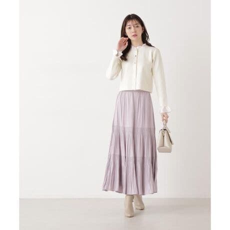 繊細なギャザーシャーリングがポイントのスカート。光沢をおさえた割線生地を使用しており、デイリーに取り入れやすいデザインです。ギャザーシャーリングをふんだんに入れたデザインは、シンプルトップスと合わせるだけで様になる主役級アイテムです。