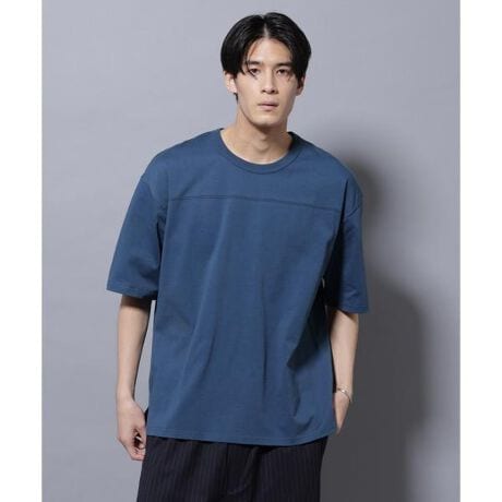 胸に切り替えを入れたフットボールTシャツ。ベーシックなTシャツとはまた違い、一枚でも様になるデザインが魅力。程よくしっかりした素材は型崩れしにくく、ガシガシ洗えるので長く着用できるのも嬉しいアイテムです。