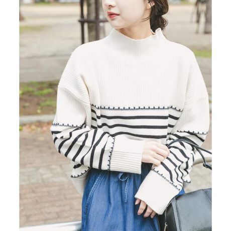 定番にさりげない表情を添える、ステッチニット。