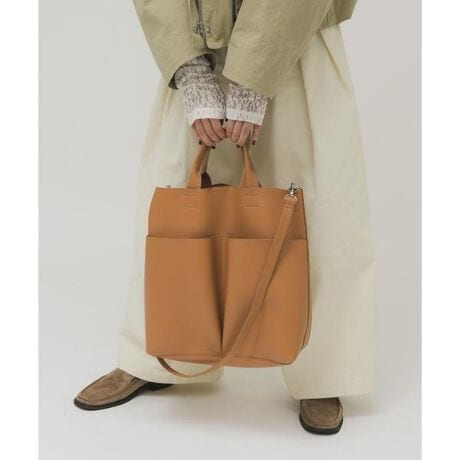 アウトポケットデザインが存在感抜群なBAG。若干ハリのある1枚合皮素材を使用しており、程よいハリとくたっとさを表現しました。新生活にもぴったりなA4サイズ収納可能なサイズ感も嬉しいポイントです。