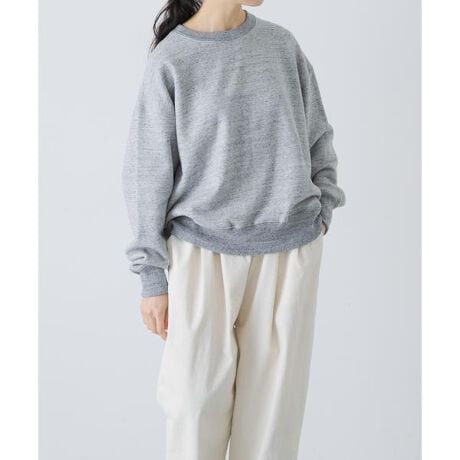 カジュアルになりすぎず、どこか品のあるスウェットが届きました。ややハリがある程よい厚みの裏毛を採用。柔らかく春先まで着やすい素材です。肩が落ちるシルエットがこなれた雰囲気に。首まわりはコンパクトにし、裾と袖口のリブが奥行きを与えています。デイリーに活躍するおすすめの一品です。