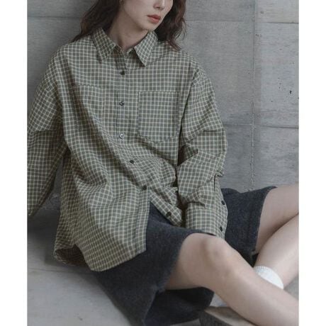 細かく落ち着いたカラー配色のチェック柄で、一枚でもレイヤード使いにも合わせやすいアイテムです。