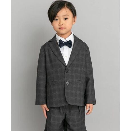 入学式など特別な日にピッタリなジャケットをご用意しました。ポリエステル×レーヨンの柔らかく上品な生地を使用し、軽くて動きやすく、シルエットはきちんと見えながらも子供の動きを妨げない仕様に仕上げました。カラーごとに異なるディテールもポイントで、NAVYは一見ベーシックながらも袖裏地をストライプ生地にして、折り返したときにさりげないおしゃれを楽しめるデザイン。CHARCOALは表地のチェック柄を活かし、裏地はすっきりとした無地で落ち着いた印象に仕上げました。同素材のパンツとのセットアップでこなれたフォーマルコーデが完成します。