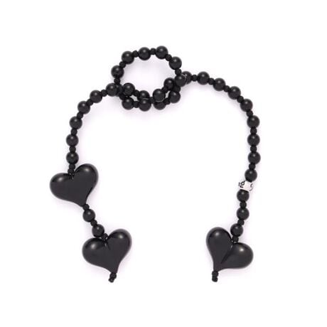 磨き上げられたグレードAのオブシディアンに、シグネチャーのブラックアクリルハート、そしてマット仕上げの日本製Miyukiビーズ。