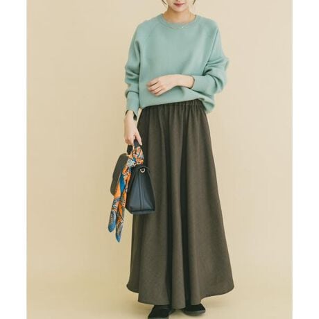 スウェットライクな風合いのニットトップスと、落ち感のきれいなスカートがセットになった、着回し力の高いアイテム。セットで着れば、コーディネートに迷うことなく、バランスの取れた大人カジュアルスタイルが完成します。トップスはほどよくリラックス感のあるシルエットで、デニムやスラックスとも好相性。スカートは女性らしいフレアラインが魅力で、ニットやブラウスを合わせて単品使いも楽しめます。それぞれセパレートでも活躍するため、デイリーからお出かけまで幅広いシーンに対応。一組あれば、スタイリングの幅がぐっと広がる、頼れるセットアイテムです。