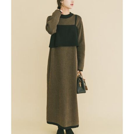 ニットワンピースとビスチェを組み合わせた、遊び心のあるレイヤード提案。 セットで着るだけで、コーディネートに悩むことなく奥行きのある洗練スタイルが完成します。 それぞれ単品でも使えるのが嬉しいポイント。 ワンピースは一枚でシンプルに、ビスチェはシャツやカットソーに重ねてアクセントにと、スタイリングの幅がぐっと広がります。