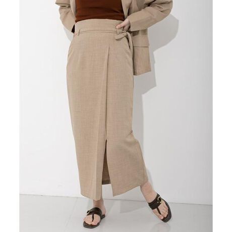 ラップデザインがシンプルながらこなれ感のあるスタイリングに仕上げてくれます。スタイルアップ効果も叶える一枚。ウエストはヒモで調節ができるのも嬉しいポイントです。同素材のアウターやトップスとセットアップ着用もおすすめです。