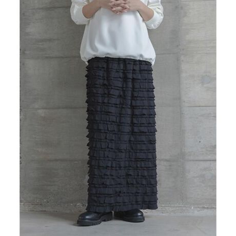 デザイン性のあるスカートなので、スウェットやニットなどシンプルなトップスに合わせるだけでコーディネートが洒落見えします。