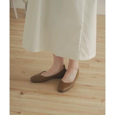 毎シーズン人気の秘密は、フラットシューズでありながら、スクエアトウ+Vカット+センターシームデザインのおかげで脚を長くすっきりと見せられるところ。楽なのにキレイを手に入れられるのが嬉しい!ボトムスを選ばず、合わせやすいカラー展開も魅力。素足や靴下合わせなど、組み合わせを楽しんで◎