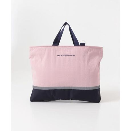 表地は撥水力のあるナイロン、ポリエステル素材を使用し、軽い雨の日や汚れに強いレッスントートバッグです。内側には中綿キルト生地を使用しクッション性があるため、タブレットや教材などの持ち運びも安心です。開口部はファスナー仕様で中身が落ちにくく、表面にはテープ状のリフレクターをあしらい、学童帰りなど夕方以降の安全にも配慮した通学やお稽古にも使いやすいデザインです。防犯ブザーやキーホルダーを付けれるDカン付き。カラーは上品で落ち着いたトーンの組み合わせにこだわり、NAVY×GREENは知的でスタイリッシュな印象に、PINK×NAVYは優しさと品の良さを感じる配色です。子供らしさを残しながらもきちんと感のある雰囲気に仕上げています。