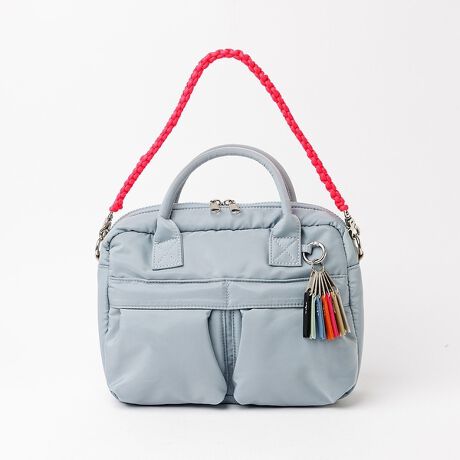 ネオンカラーのコードハンドルと、cheekのリボンチャームがアクセントとなり、シンプルながらも程よくトレンド感とエッジを効かせたデザインバッグ。