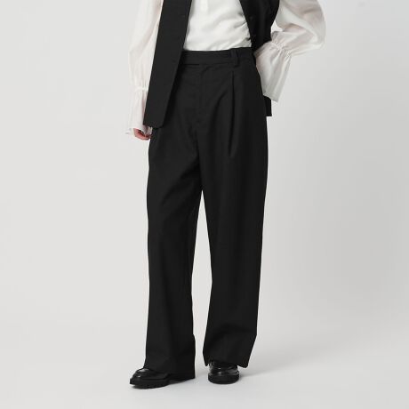 ワンタックで体のラインが響きにくいワイドストレートシルエットに仕上げました。