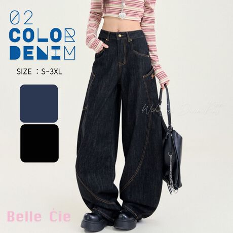 -切り替えデザインで魅せる超ワイドデニムパンツ