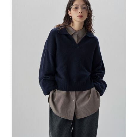 シャツとVネックトップスのいいとこ取りをしたスキッパーネックは、