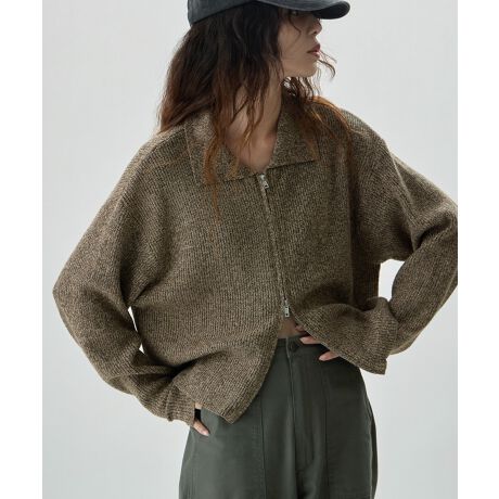 etoll. エトル ゆるっと華奢見えに導くシルエットで仕上げた、Wジップのニットカーディガン。