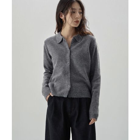 アルパカタッチポロ襟カーディガン